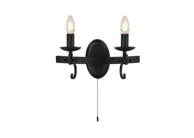 Applique Double branches fer forgé noir, E14 2x60w max avec inter CARTWHEEL III - 2LT