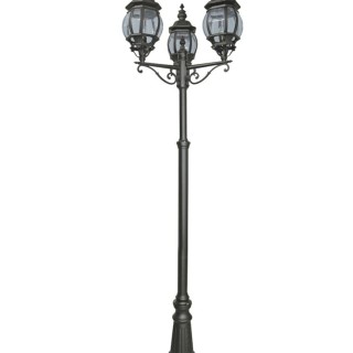 Lampadaire Metal Noir et verre transparent E27 max 3x60w IP44 CLI Haut 2.20m Diam 56cm BEL AIRE